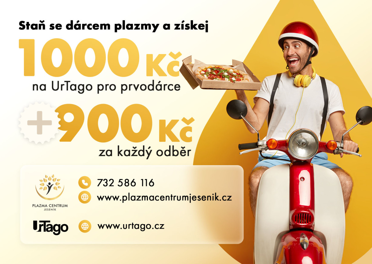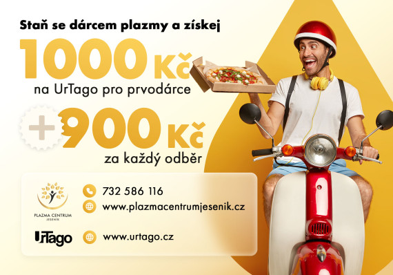Spojili jsme síly s UrTago.cz a tak si jako prvodárce* odneseš nejen 900 Kč za každý odběr, ale také 1000 Kč na jídlo!